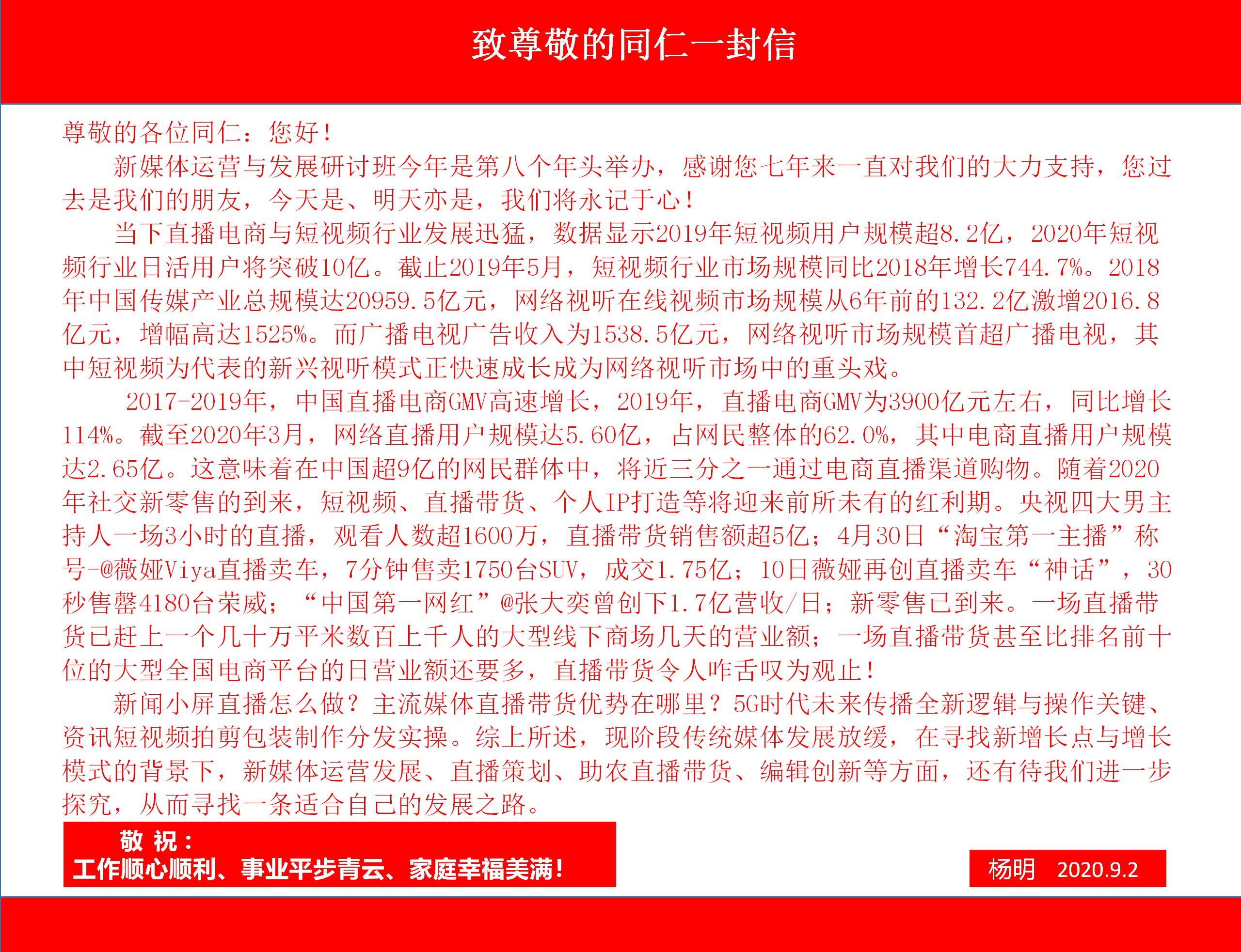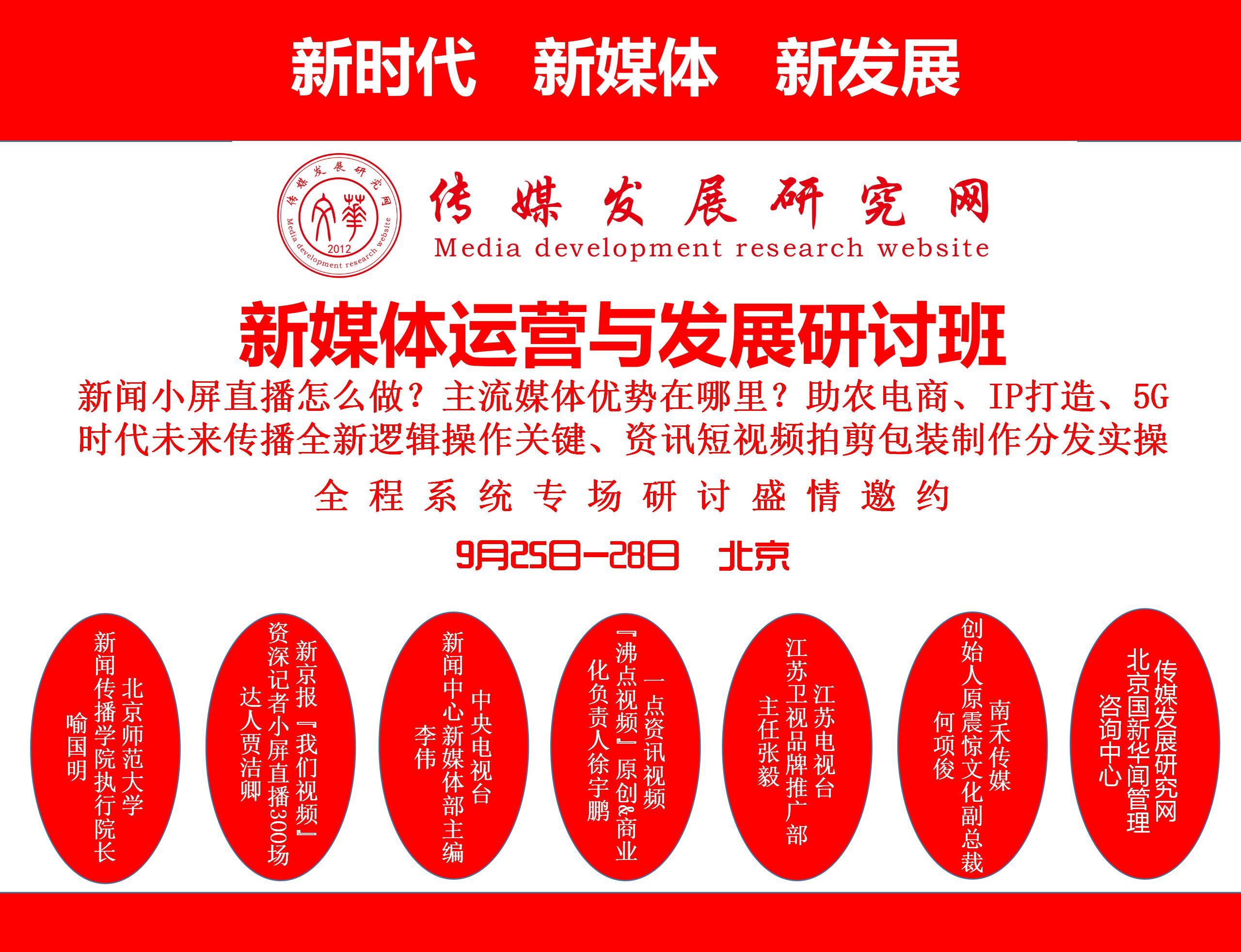 9月25日-28日 北京 新聞小屏直播怎么做?主流媒體優(yōu)勢在哪里?助農電商、IP打造、5G時(shí)代未來(lái)傳播全新邏輯操作關(guān)鍵、資訊短視頻拍剪包裝制作分發(fā)實(shí)操,歡迎踴躍報名參加!