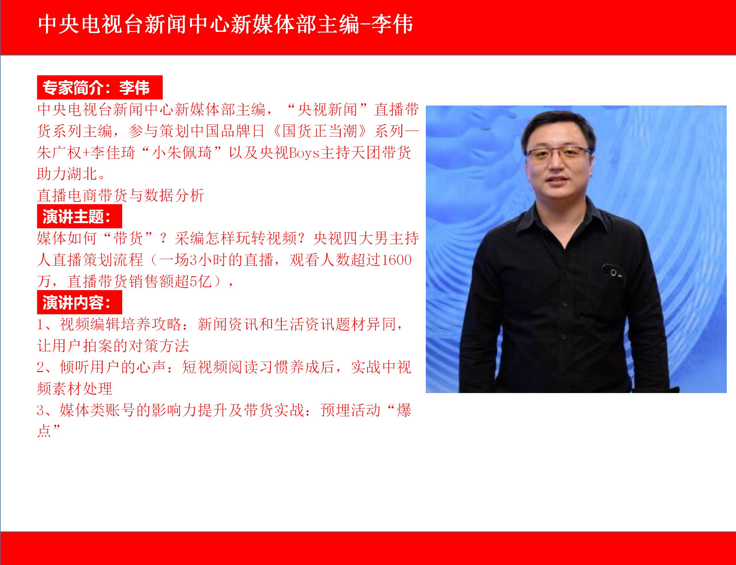 本次活動(dòng)我們邀請了大咖喻國明老師——北京師范大學(xué)新聞傳播學(xué)院執行院長(cháng)、教育部長(cháng)江學(xué)者特聘教授、中國傳媒經(jīng)濟與管理學(xué)會(huì )會(huì )長(cháng);曾參與300余場(chǎng)新聞小屏直播的新京報“我們視頻”資深記者,泛資訊直播主播轉型新聞直播記者賈潔卿老師;中央電視臺新聞中心新媒體部主編,“央視新聞”直播帶貨系列主編李偉老師;一點(diǎn)資訊視頻沸點(diǎn)視頻原創(chuàng )&商業(yè)化負責人徐宇鵬;江蘇衛視品牌推廣部主任張毅老師;南禾傳媒創(chuàng )始人原震驚文化副總裁何項俊老師等,歡迎同仁踴躍報名參加,全是大咖,機不可失!![]()