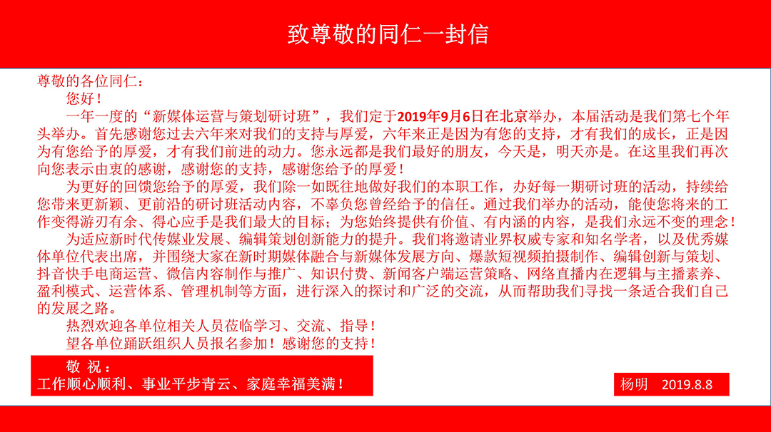 2019.9.6-9日 北京 新媒體運營(yíng)與策劃研討班 誠邀您的光臨