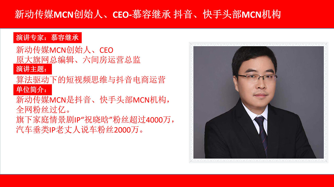 2019.9.6-9日 北京 新媒體運營(yíng)發(fā)展、抖音快手運營(yíng)及電商拓展、音頻視頻內容制作、原創(chuàng )新聞客戶(hù)端APP移動(dòng)化運營(yíng)、網(wǎng)絡(luò )直播的內在邏輯與網(wǎng)絡(luò )主播的素質(zhì)養成、知識付費、微信的內容制作與推廣方法、移動(dòng)端直播、新聞短視頻的拍攝制作與傳播研討班 誠邀您的光臨 尊敬的各位同仁: ??您好! ??我們定于2019.9.6日—9日在北京舉辦一期:“新媒體運營(yíng)與策劃研討班”的活動(dòng),誠邀您的光臨!活動(dòng)現正火爆進(jìn)行報名...